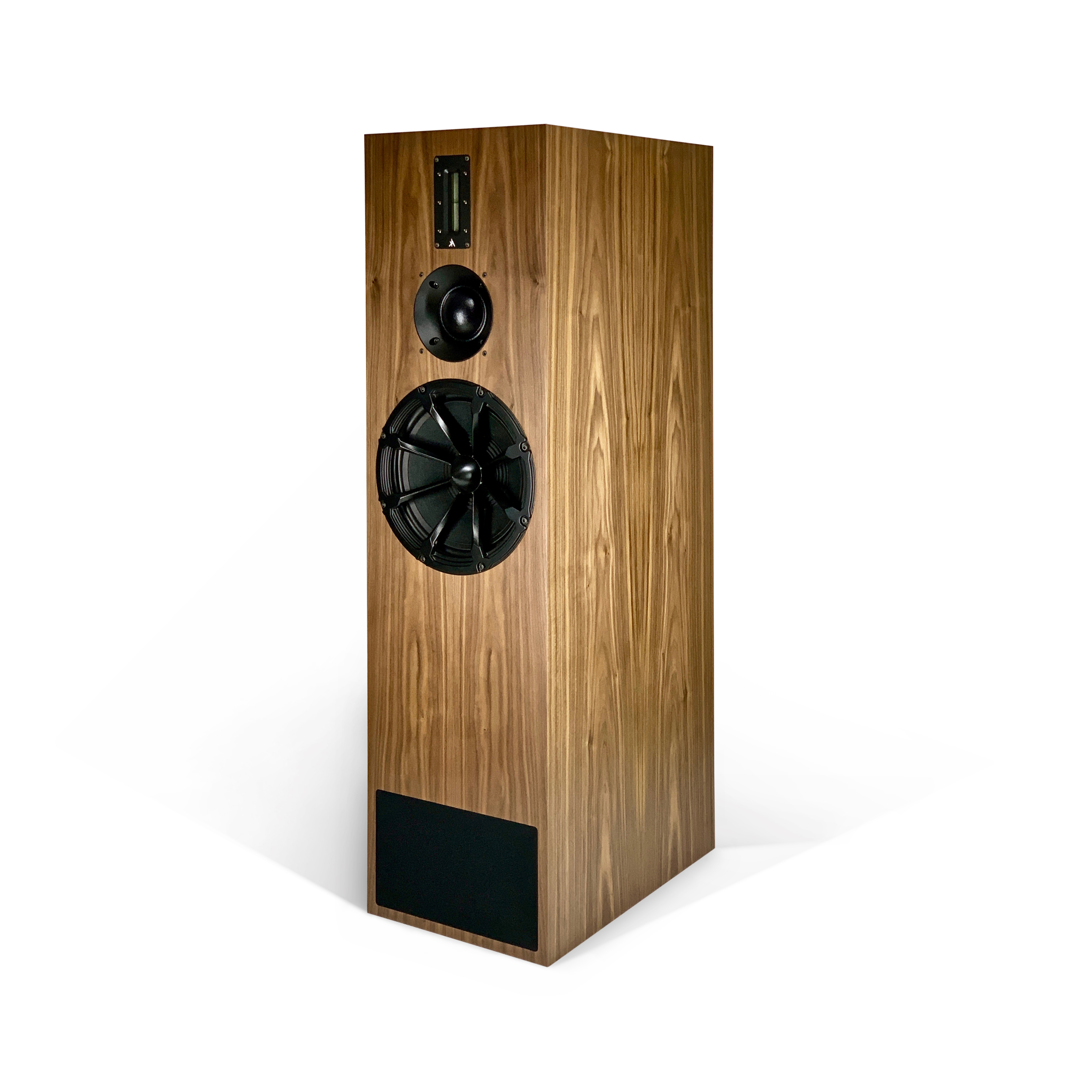 Les enceintes sont produites à la main, avec des boîtiers en contreplaqué de bouleau baltique de haute qualité, matériau choisi pour sa rigidité, son inertie et son comportement acoustique favorable. Les finitions (vernis laqué, placage bois véritable, couleurs RAL personnalisées) font partie intégrante du produit, car le rendu esthétique doit accompagner le rendu sonore.